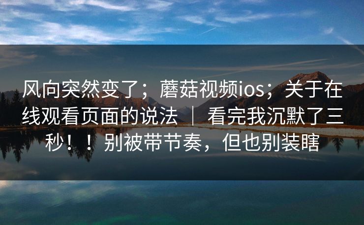 风向突然变了;蘑菇视频ios;关于在线观看页面的说法 | 看完我沉默了三秒!!别被带节奏,但也别装瞎