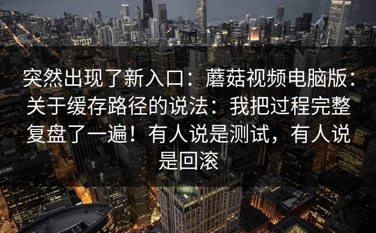 突然出现了新入口:蘑菇视频电脑版:关于缓存路径的说法:我把过程完整复盘了一遍!有人说是测试,有人说是回滚