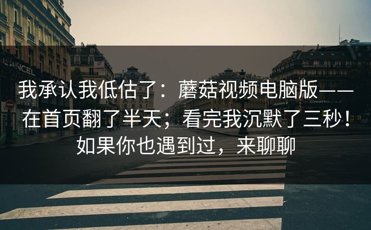 我承认我低估了:蘑菇视频电脑版——在首页翻了半天;看完我沉默了三秒!如果你也遇到过,来聊聊