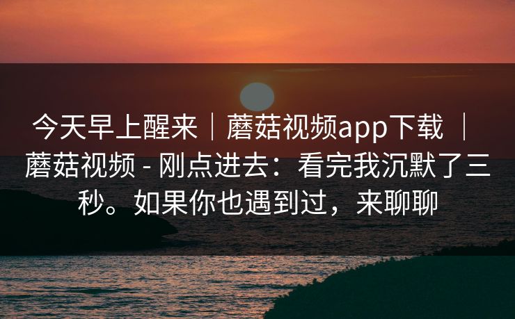 今天早上醒来|蘑菇视频app下载 | 蘑菇视频 - 刚点进去:看完我沉默了三秒。如果你也遇到过,来聊聊