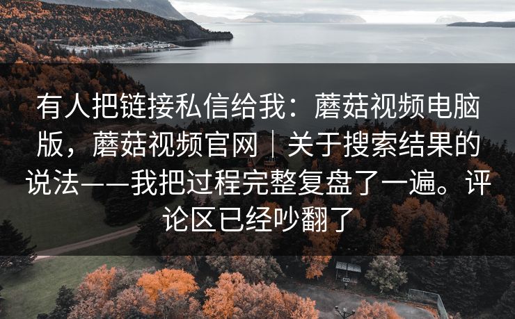 有人把链接私信给我:蘑菇视频电脑版,蘑菇视频官网|关于搜索结果的说法——我把过程完整复盘了一遍。评论区已经吵翻了