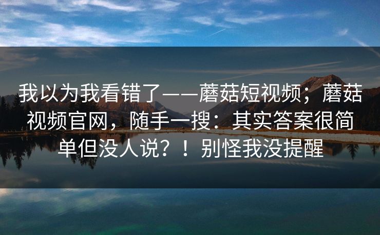 我以为我看错了——蘑菇短视频;蘑菇视频官网,随手一搜:其实答案很简单但没人说?!别怪我没提醒